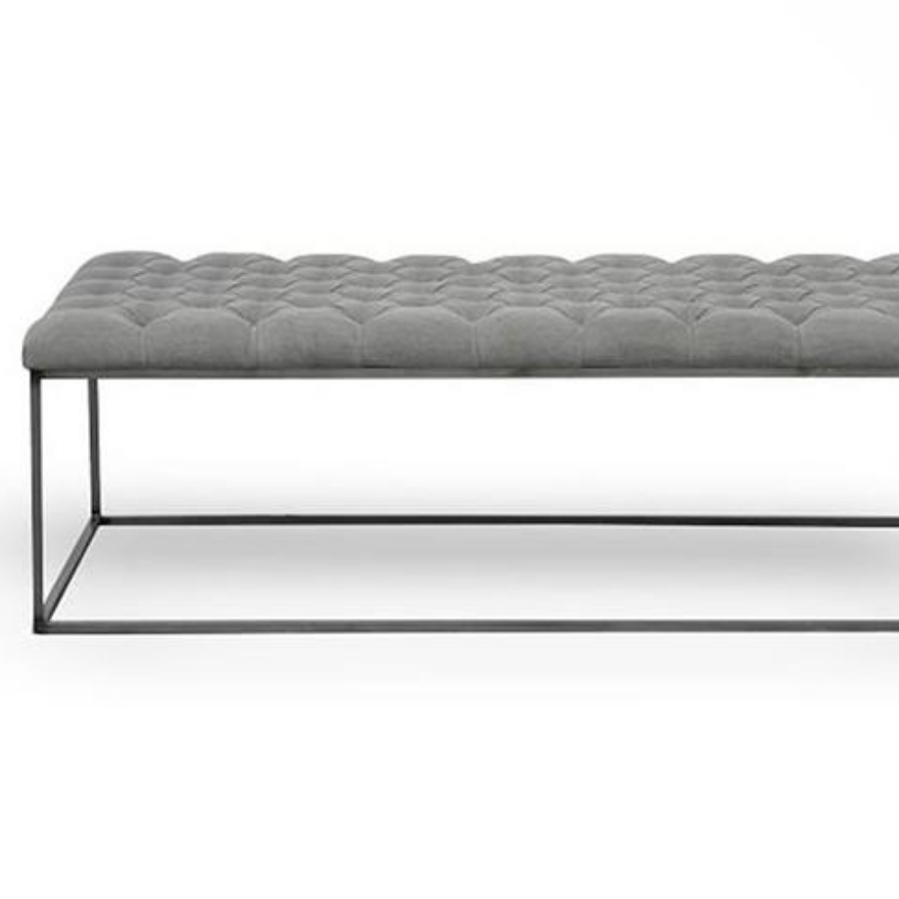 Ürün dokuma kumaş olup, kapitone dikiş uygulanmıştır. Demir aksamı mat siyah fırın boyalıdır.
